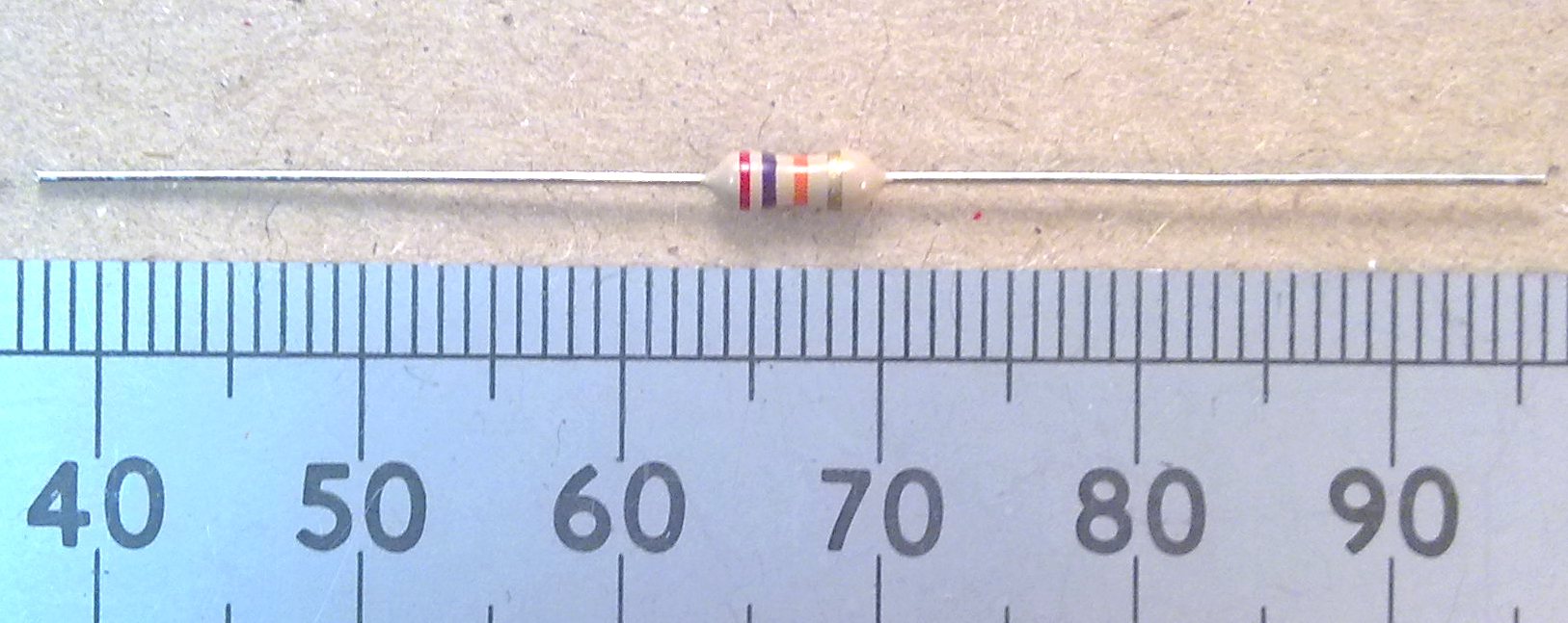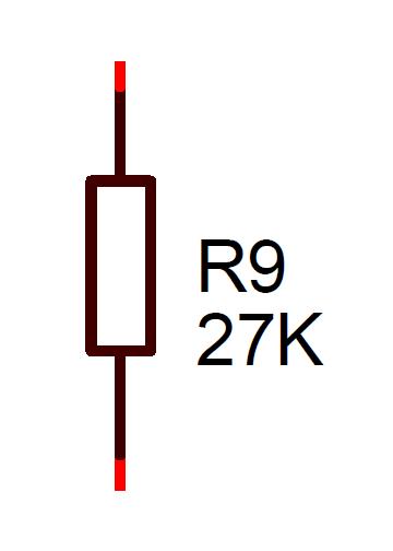 Colour code Red, Violet, Orange = 2,7 and three zeros = 27000 Ohms = 27K